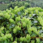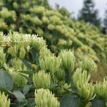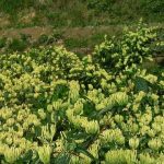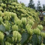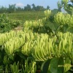 以药养花、经济效益显着:在金银花行间套药材的种植模式可以使经济效益显着提高。金银花生长前期套种甘草,其经济效益和以上的分析基本相同。同时通过对甘草 的施肥、浇水管理,金银花从中得到了充足养分而旺盛生长。第一年可采收金银花20kg,市价35元/kg,亩收入700元。第二年采收金银花60kg,亩 收入2000元,再加上套种甘草的收入,效益相当可观。 第三年金银花进入了丰产期,亩产干花150~200kg,效益可达5000元以上。同时其行内形成了一定的隐蔽度,为喜湿、耐荫的半夏生长提供了天然生存 条件,所以半夏长势良好,效益可想而知,可谓是一举多得。
